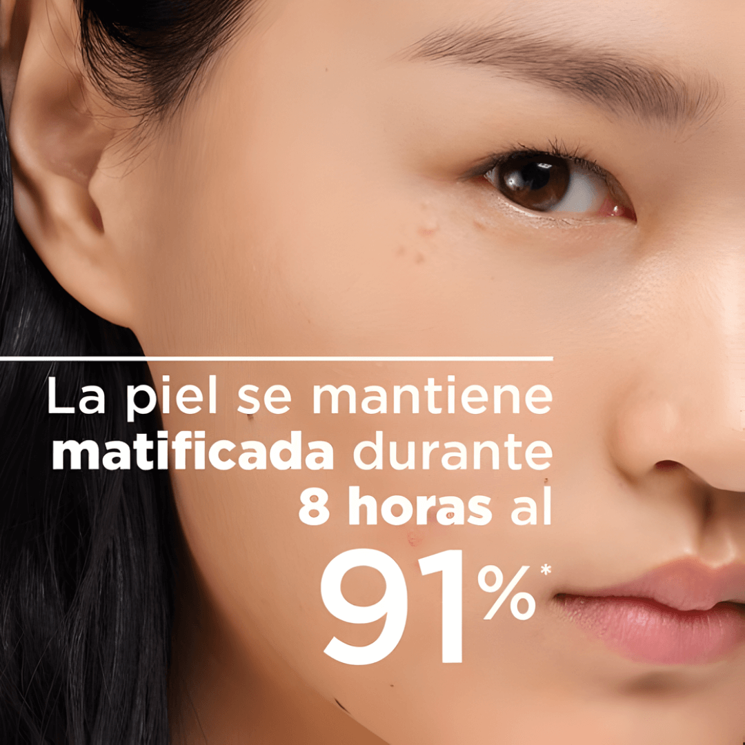 Su fórmula única ayuda a regular la producción de sebo, minimizar la apariencia de los poros dilatados y controlar el brillo, dejando la piel con un acabado mate duradero.